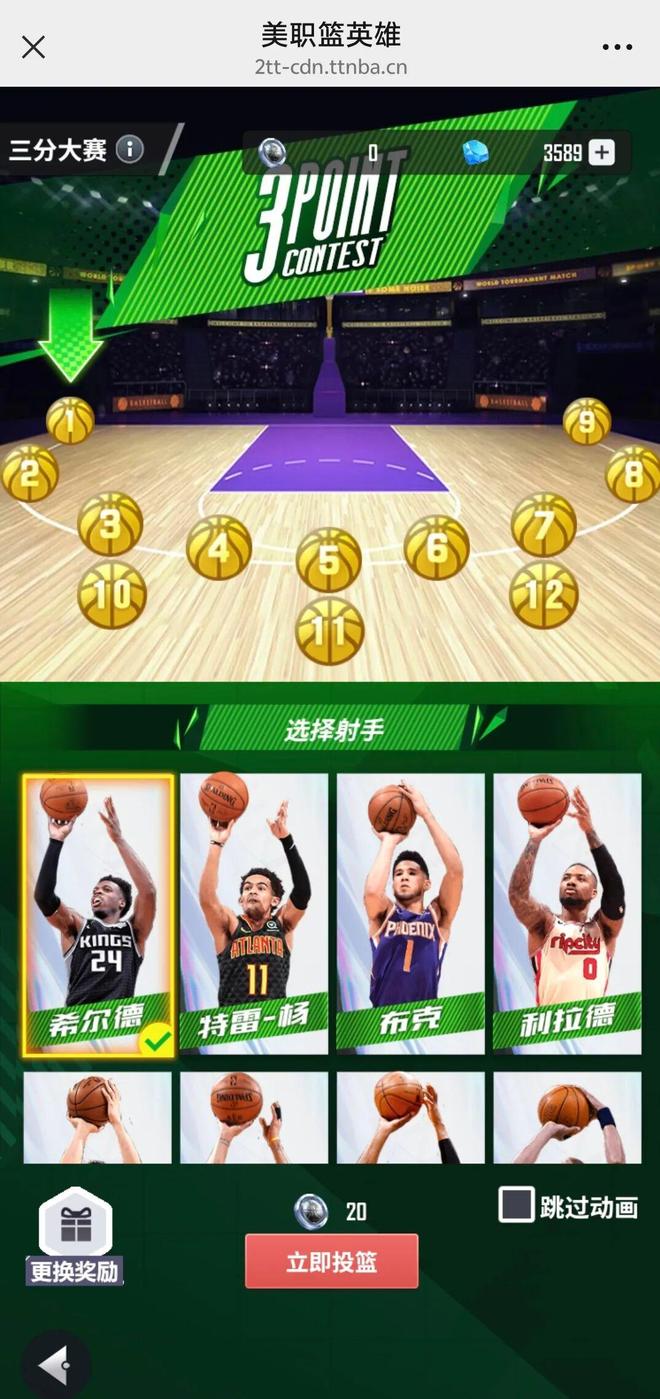 选择你信赖的三分射手为你拿下奖励